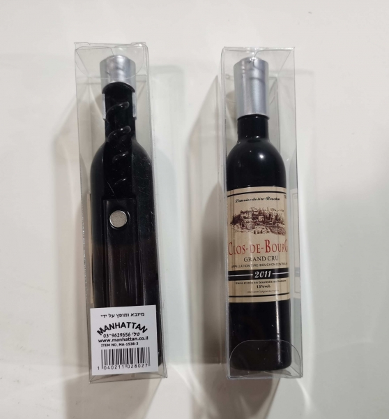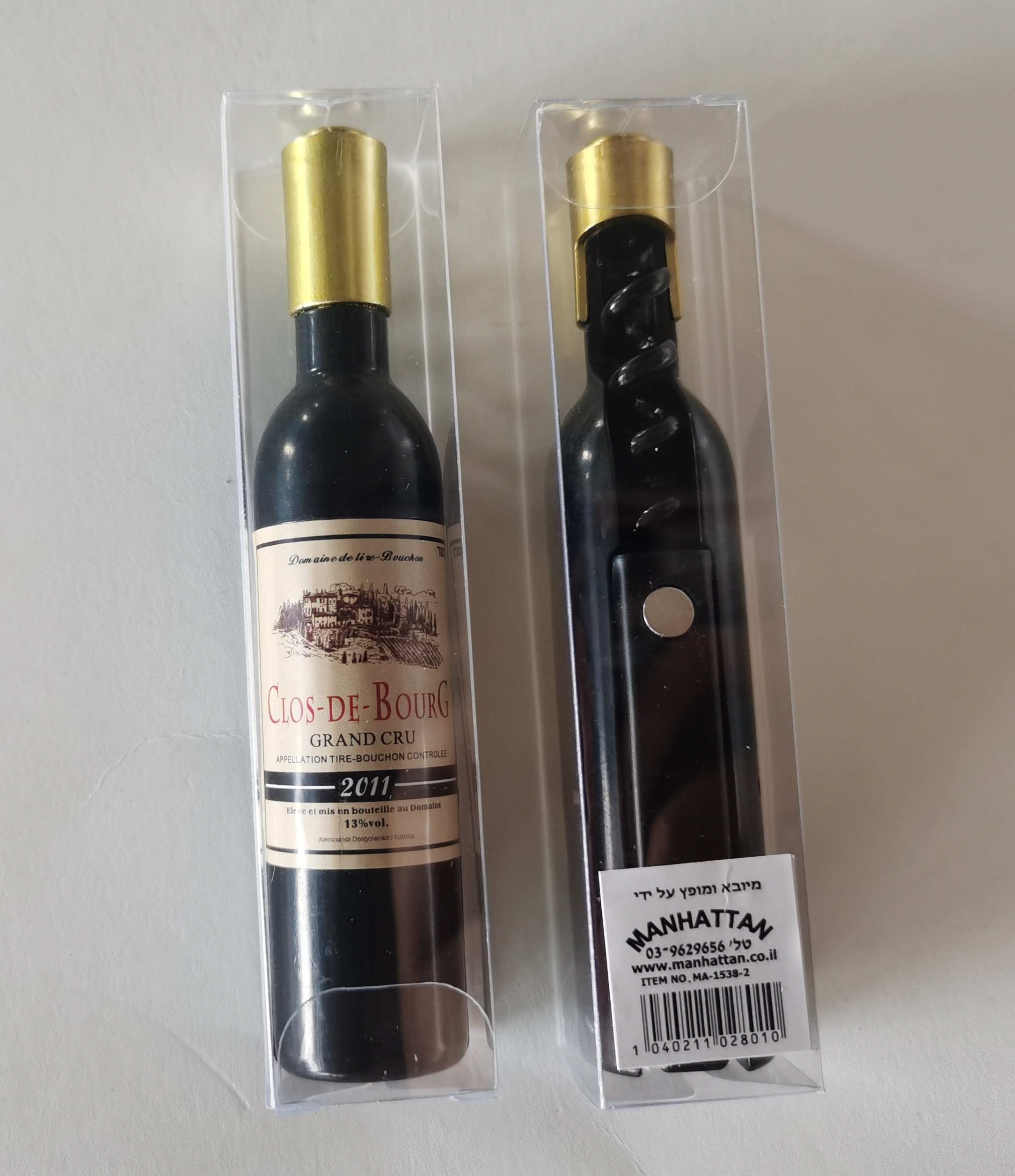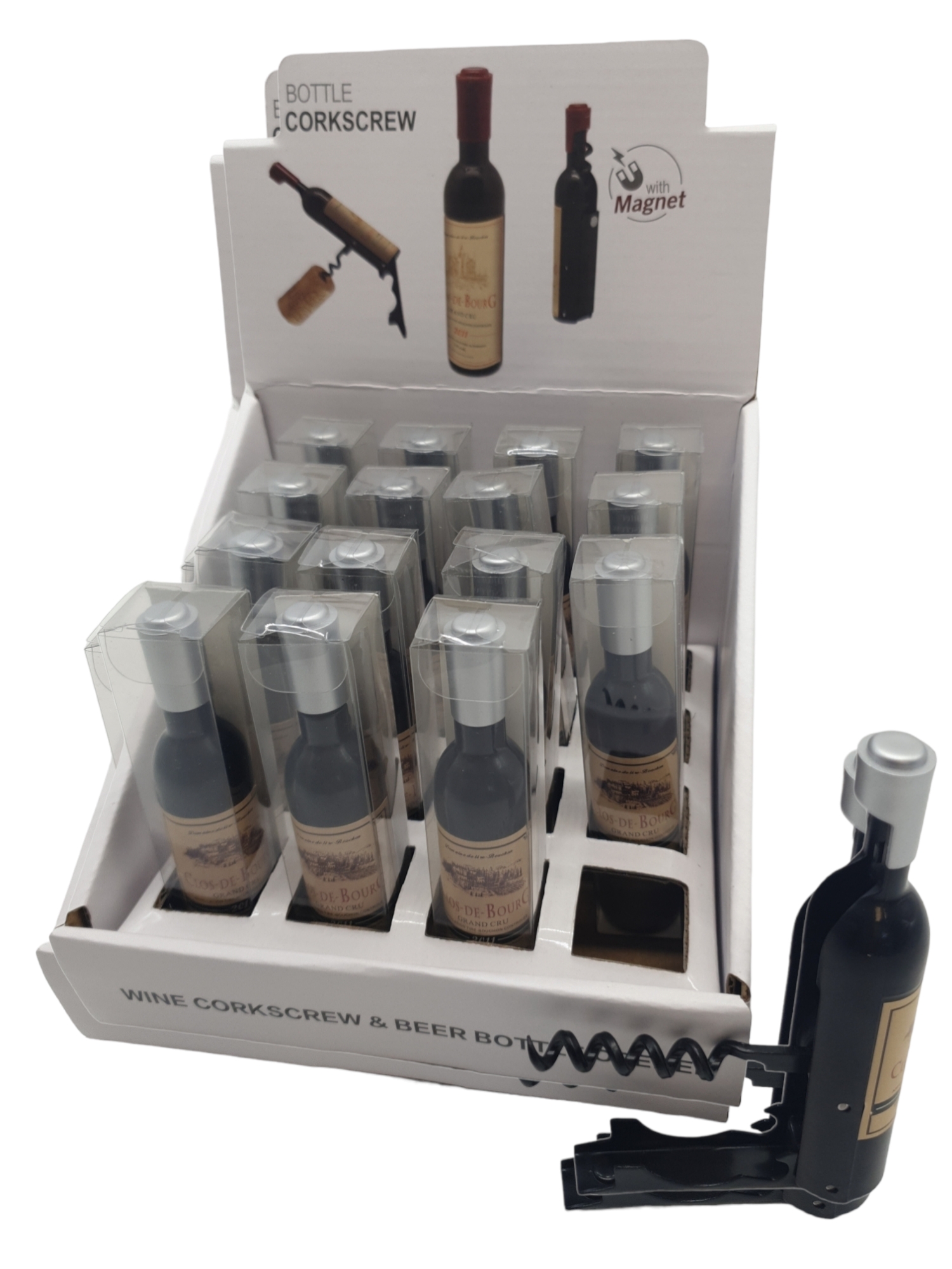 (N) פותחן לבירה ויין דמוי בקבוק יין בדיספלי- כסוף Ref : 1538-3