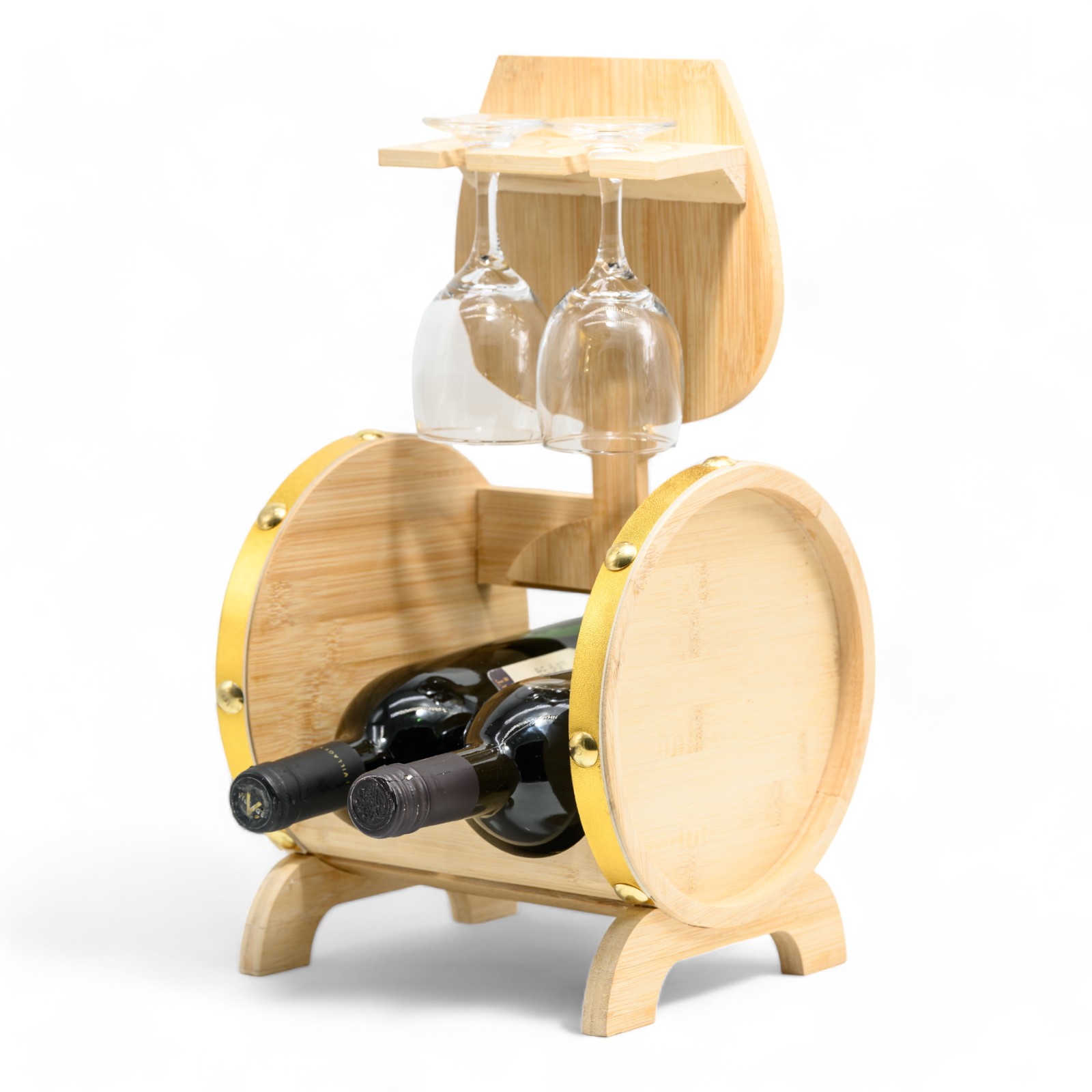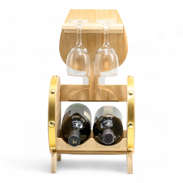 מעמד חבית לשני בקבוקי יין עשוי במבוק + 2 כוסות Ref : 1343
