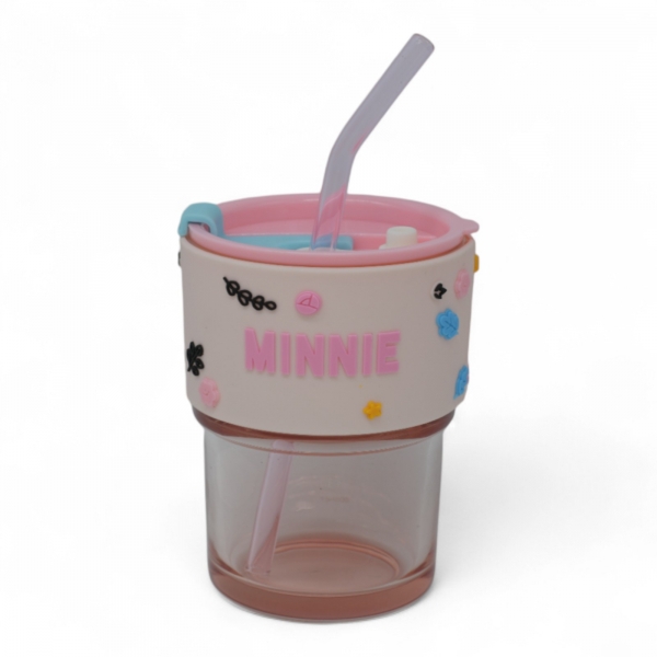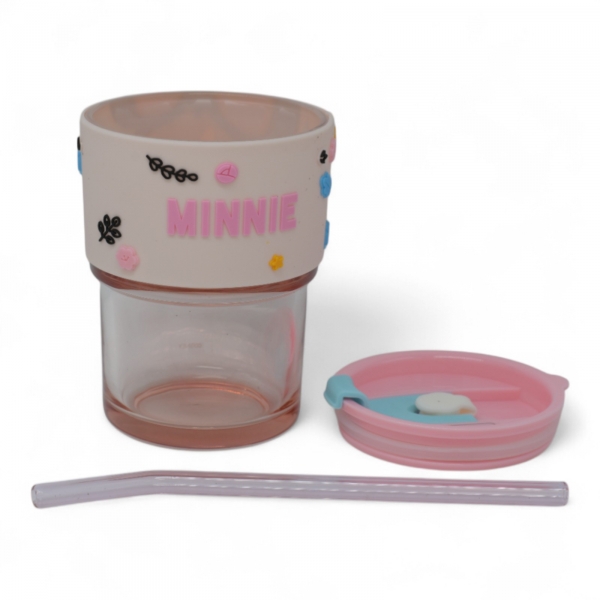 כוס זכוכית דיסני עם חבק סיליקון מכסה וקש באריזת מתנה - מיני Ref : 7953-2