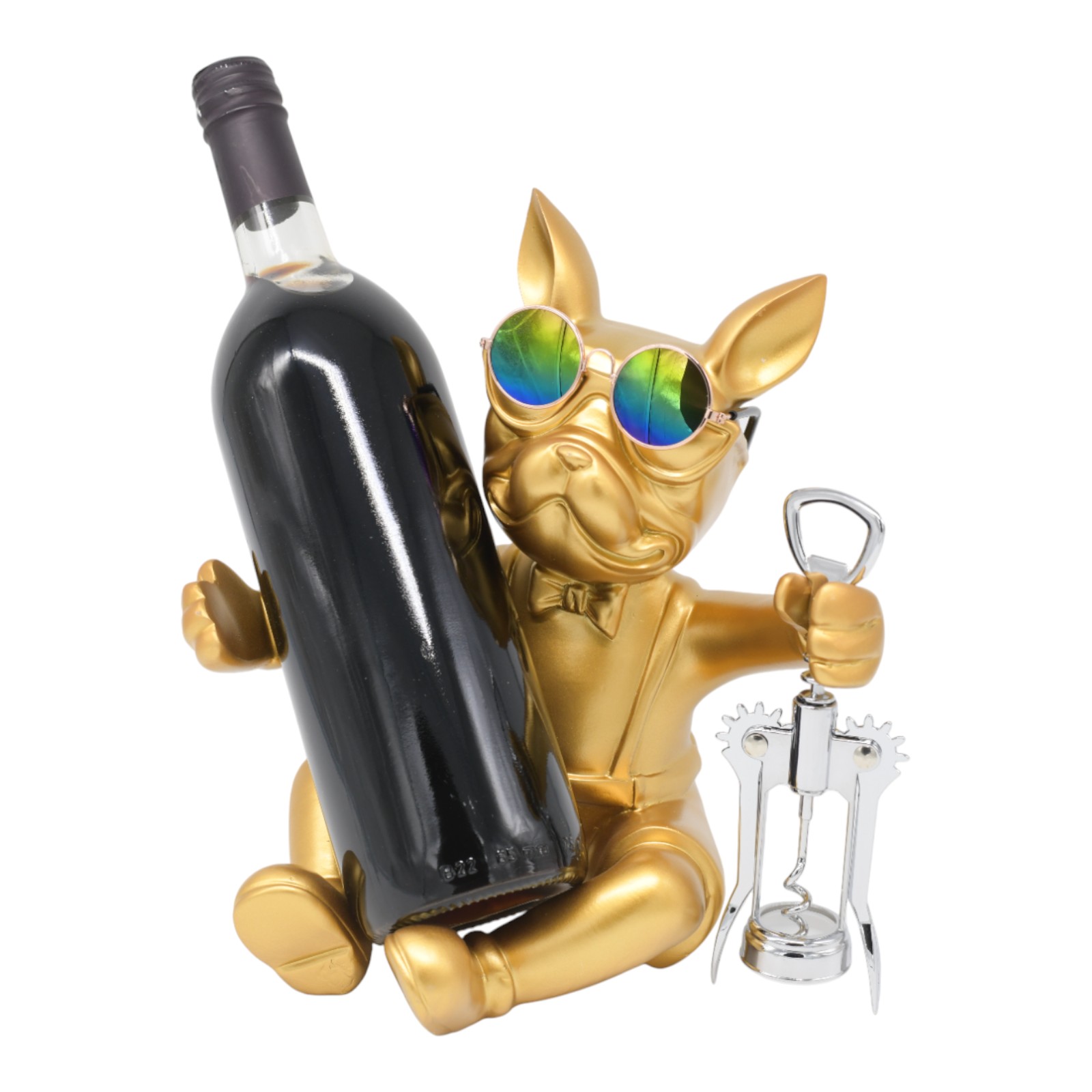 מעמד לבקבוק יין בולדוג צרפתי עם פותחן - זהב Ref : 1668-3